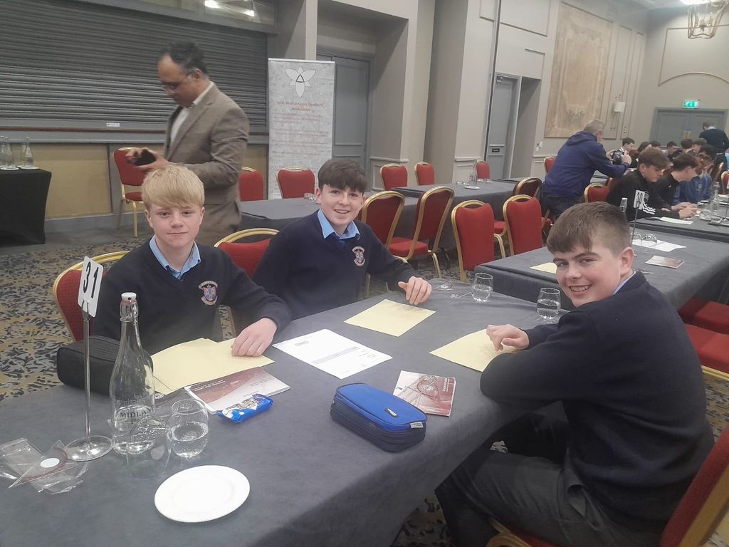 Huge congratulations to our third-year students, Cormac Prior, Jack Kenny, and Daniel McCaughey, who represented the school at the IMTA Pi Quiz National Finals held on Saturday in Portlaoise.