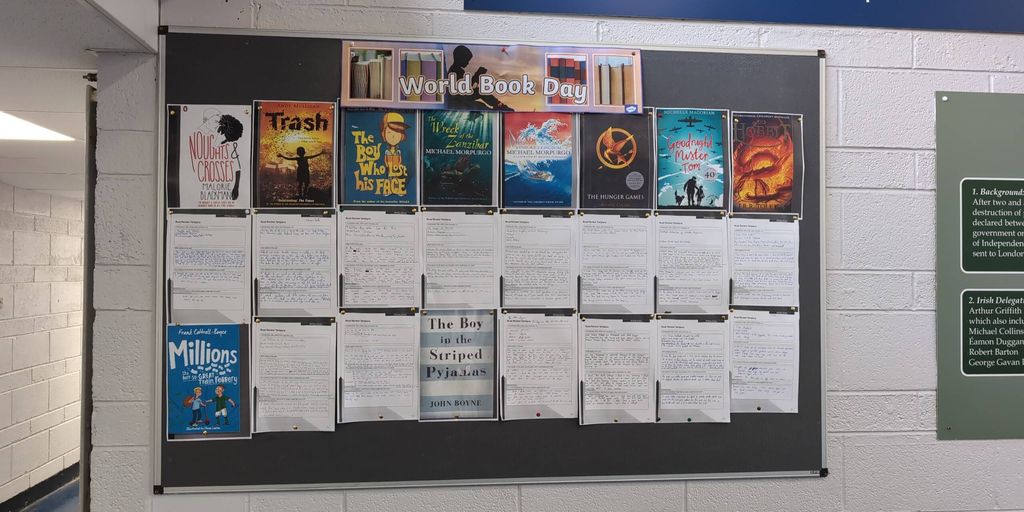Today is World Book Day and students marked the day with a number of events. Class 1P participated in a creative writing workshop with author Cethan Leahy. Students developed their writing skills with a focus on plot generation, character creation and dialogue. This was a very beneficial and worthwhile session . First Years entered a writing competition on the theme of the importance of books in the Digital Age. The quality of responses was excellent. The overall winner was Eddie Hegarty from class 1I . The three runners up were Robert Shortall from 1K, Cathal Murphy from 1P and Sam Weafer from 1C. The whole school took part in a Drop Everything and Read activity for part of the first class this morning. This was a lovely opportunity to pause and take time to immerse ourselves in a favourite book. Class 1P composed book reviews based on their book swap project. These book reviews are on display beside the Senior locker room. Thank you to all the tutors for taking part in the Tutor Time World Book Day quiz. Reading has many benefits. It strengthens writing skills, expands vocabulary and can improve overall wellbeing. Please find attached a recommended reading list for both Junior and Senior Cycle.